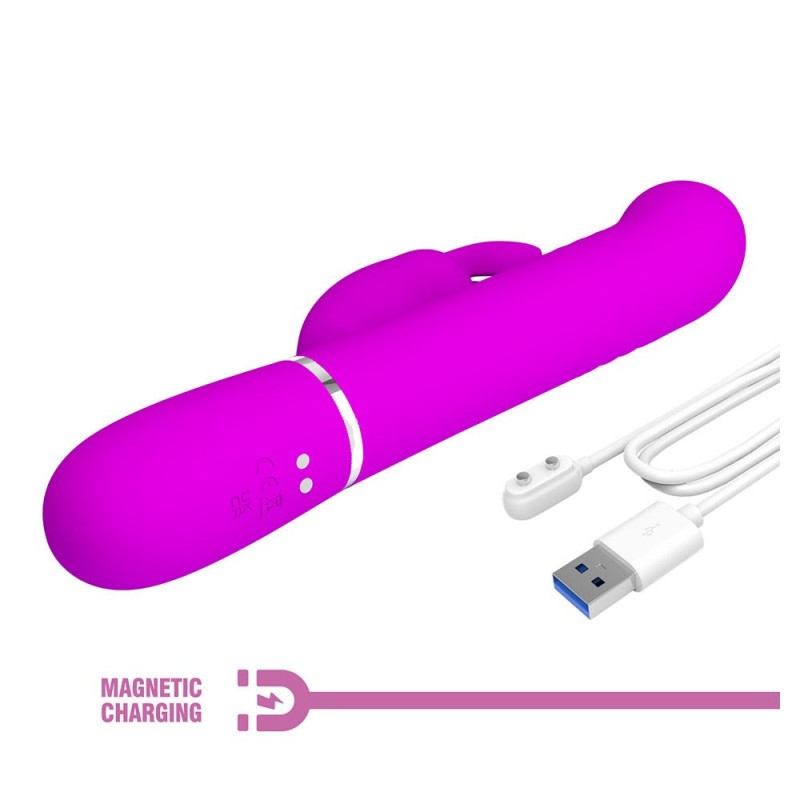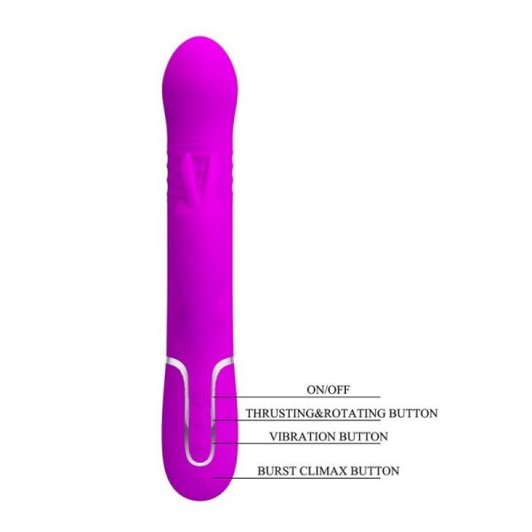 Este vibrador rotador de Pretty Love está diseñado para ofrecer una experiencia multisensorial que te dejará sin palabras. Con un potente motor en el eje y otro en estimulador de clítoris, disfrutarás de 7 funciones de vibración, 4 funciones de empuje y 4 modos de rotación con esferas móviles que masajean suavemente el canal vaginal. Cada función está pensada para adaptarse a tus deseos y llevarte al límite. Y cuando estés lista para un clímax arrollador, solo presiona el botón “Function Clímax” y déjate llevar por una estimulación total.